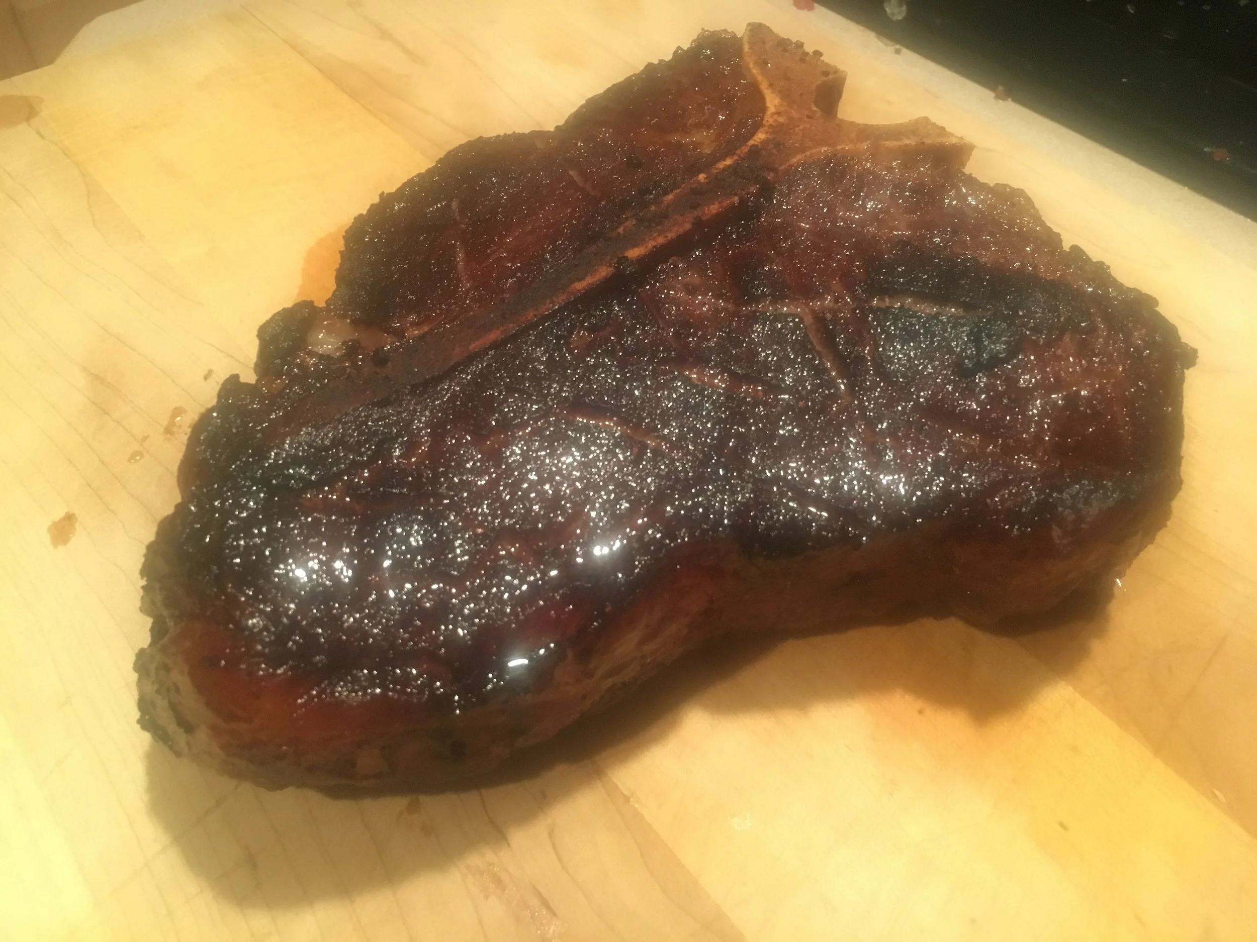 We return to the Airbnb, drop our stuff, and season and refrigerate the steaks. So much work! We are hungry. It’s Meat O’Clock.